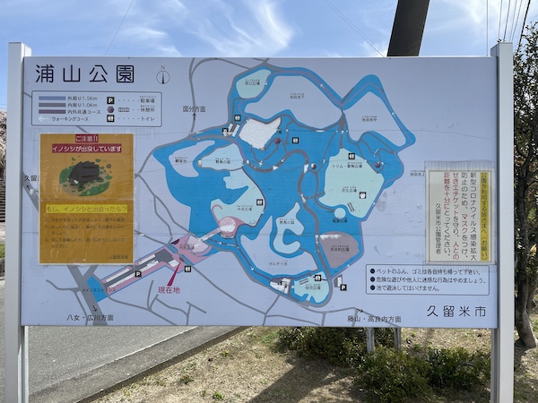 久留米市の浦山公園は、国道3号線沿いの成田山久留米分院のお隣にあります。ちなみに成田山って由緒ただしき、空海さんの成田山の分院だったのですね。隣接の浦山古墳には弘法山と呼ばれるお寺もあるようで、なかなか面白い由来のある場所なのかもしれませんね。