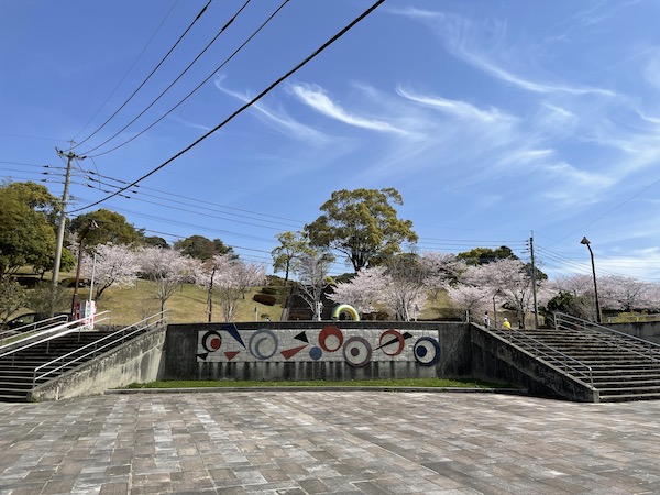 緊急事態宣言も解けた週末だったので、人もちらほら、皆さん桜を楽しんでおられました。階段を上がると円形広場で桜がお出迎えしてくれています。